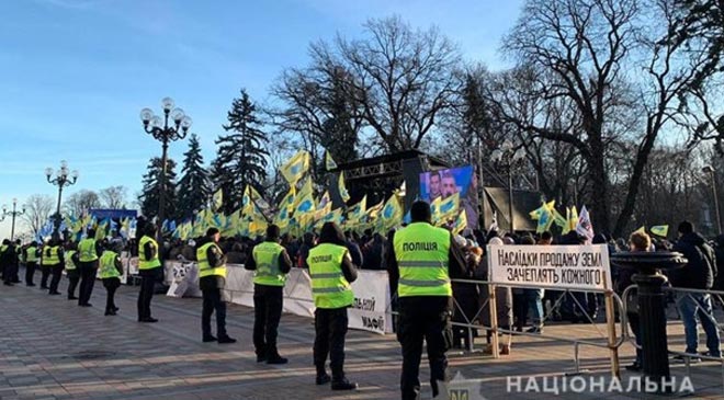 Полицейские и бойцы Национальной гвардии во вторник, 17 декабря, усилили меры безопасности в центре Киева в связи с проведением массовых акций протеста противников продажи земли, в том числе и под зданием Верховной Рады. Об этом сообщает пресс-служба столичного главка Национальной полиции.