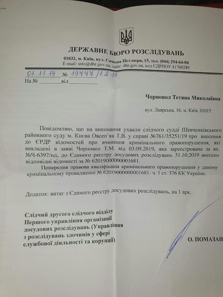 “Після двох місяців мук і вагань (хоч закон вимагає протягом 24 годин) ДБР нарешті розпочало третє досудове слідство проти Портнова по моїй заяві”, – зазначила Чорновол.