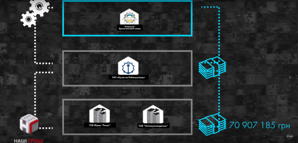В целом на схеме зарабатывали сотни миллионов гривен. Так, подставная фирма «Оптимумспецдеталь» одержала от заводов более 90 миллионов, «Ренал» — около 85 миллионов, а через ПАТ «Кузня на рибальському» «прогнали» еще 70 миллионов гривен только от «Киевского бронетанкового завода».