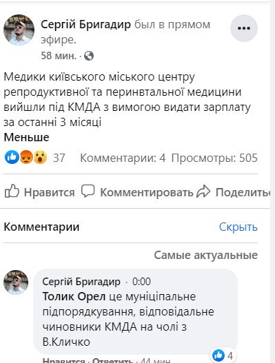 Также под зданием КГГА пришли работники Киевских клинических больниц №8 и №9, а также «Киевской городской психиатрической больницы им. Павлова».