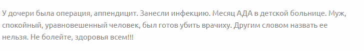 Другая пациентка пишет: «А я у себя обнаружила опухоль, семейная врач быстро дала направление в онкоклинику. И потом я ждала больше 3 месяцев, пока меня туда вызовут на приём. Попала только благодаря тому, что моя врач буквально бомбардировала их своими требованиями заняться мной. Так что попасть было очень сложно».