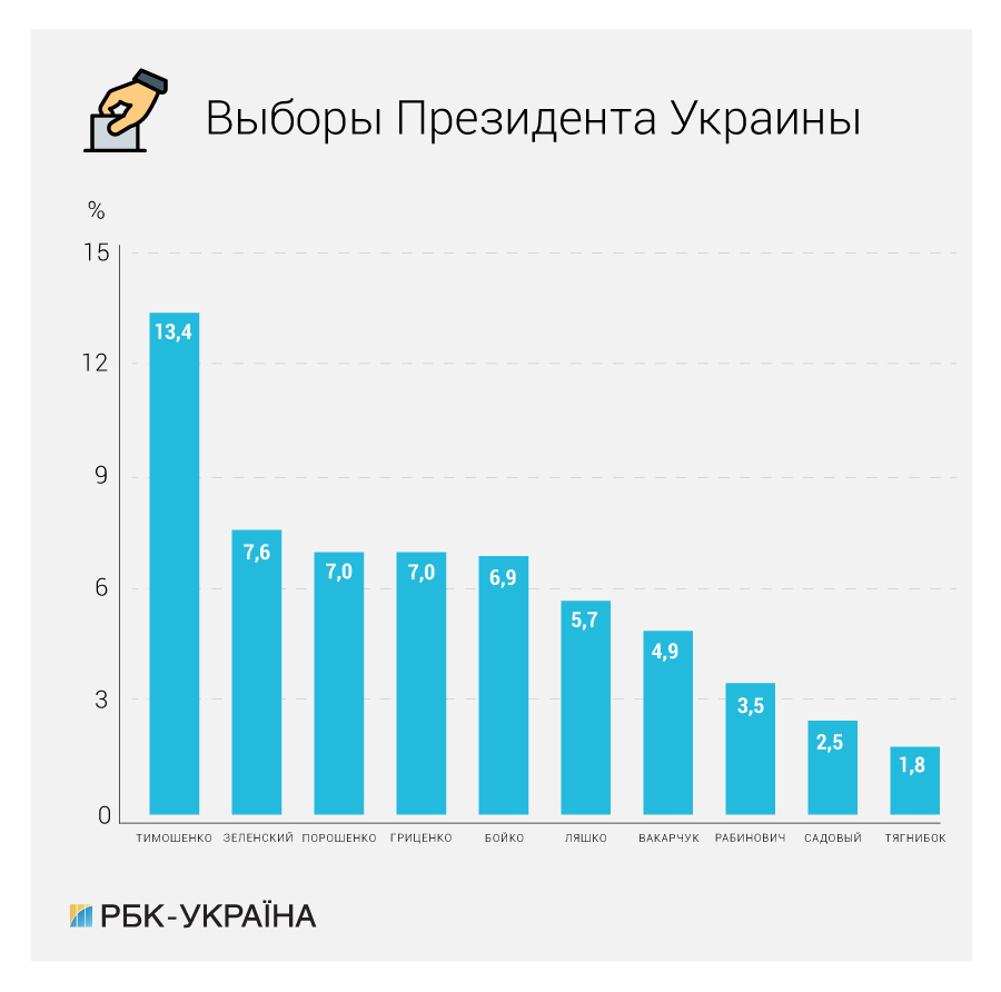 - Высокие предвыборные рейтинги у Владимира Зеленского, хотя популярный украинский шоумен не высказывал своей заинтересованности в выборах. Тем не менее, за Зеленского проголосовали бы 7,6%/ 10,7% респондентов.