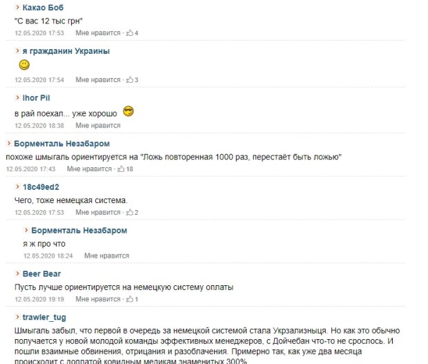 «С вас 12 тыс грн»; «Пусть лучше ориентируется на немецкую систему оплаты»; «Чтобы была немецкая медицина, нужно вложить большие деньги в течение десятилетий»; «коррупция ничего не даст сделать. Никакого толку от твоих вложений, если их украдут»; «много ли украинцев останется в живых после вашей реформы?»; «Пугает «…в том числе и на немецкую систему…». ***, а не пробовали просто от начала и до конца ВНЕДРИТЬ ОДНУ СИСТЕМУ? Задолбали реформаторы с песенкой «Я ее слепила из того что было…»; «Немецкая система основана на частных больницах. Надо бы уже собственной головой обзаводиться».