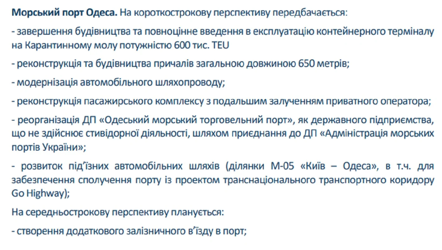 В целом под приватизацию и передачу в концессию всех портов Украины в Министерстве инфраструктуры разработали целую стратегическую программу аж до 2038 года.