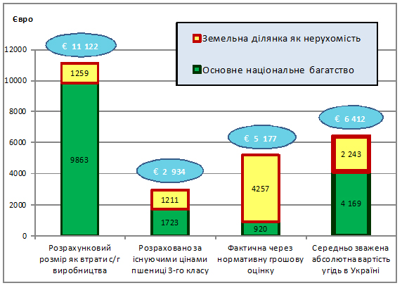 Очевидной и логической является та аксиома, по которой условно абсолютная стоимость единицы площади «земли» в Украине, которую можно приравнивать к соответственно общей цене (стоимости) в странах Европы, состоит из двух очерченных выше величин, принадлежащих олицетворенным разным владельцам.