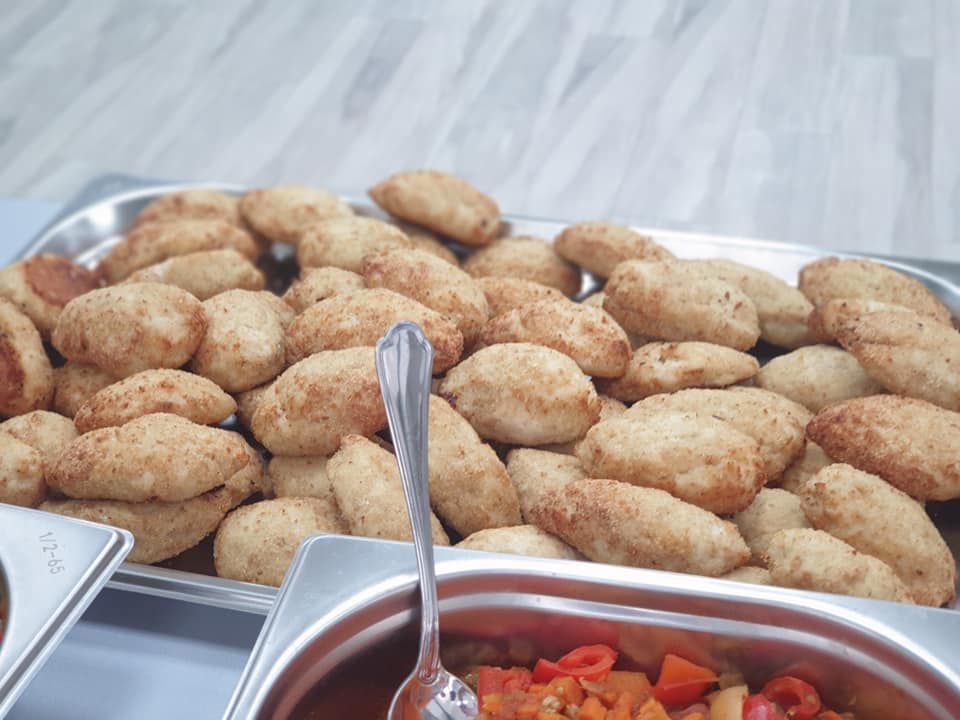 Чиновница отметила, что младшие школьники теперь могут выбирать среди ряда блюд. В меню суп-пюре, овощной суп, булгур, вермишель, свежие и тушеные овощи. На фото также можно увидеть котлеты.