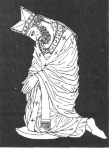 Странный старый рисунок священника с руками в молитве, но направленными вниз, к Сатане.