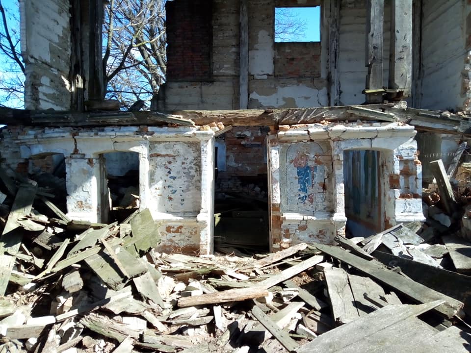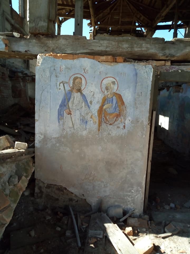 Колесо истории прошлось по кирпичной скорлупке, оставив смотреть сквозь прорехи в небо лики святых.