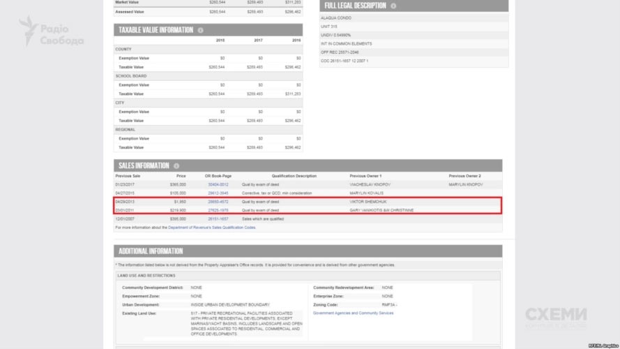 Чьи же это были 325 тысяч долларов, на которые студентка-племянница украинского депутата-прокурора Шемчука приобрела апартаменты во Флориде? Ответ может крыться в следующем установленном «Схемами» факте.