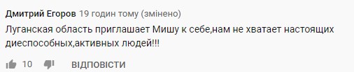 «Луганская область приглашает Мишу к себе,нам не хватает настоящих диеспособных,активных людей!!!», — сказал Дмитрий Егоров.