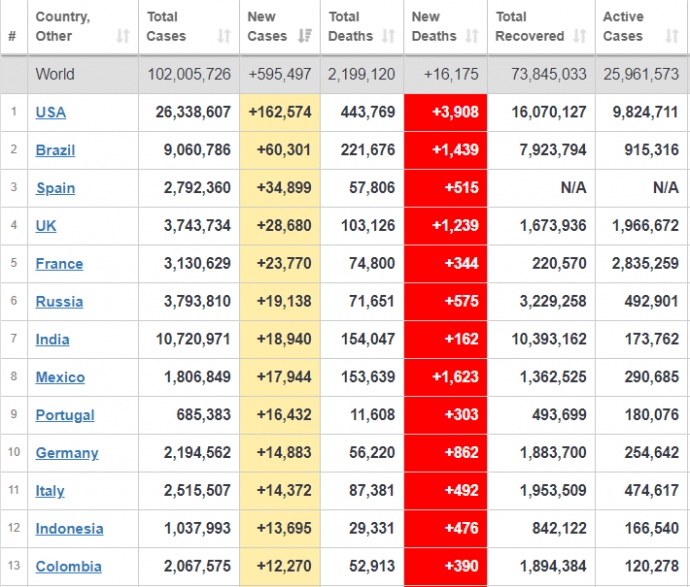 США, Бразилия и Испания снова подтвердили больше всего случаев COVID-19