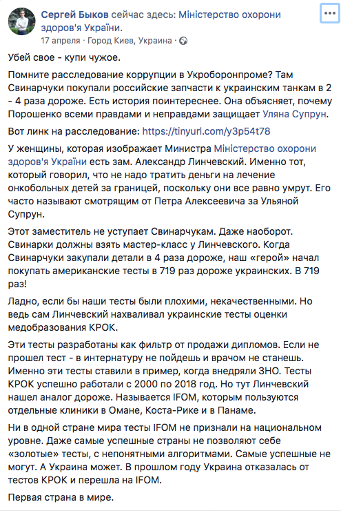 Псевдореформы команды МОЗ нужно немедленно остановить, а команду МОЗ срочно заменить, на украинскую, профессиональную и ответственную перед украинским народом команду.