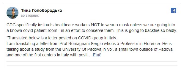 Об этом в Facebook пишет доцент Медицинского университета им. Альберта Эйнштейна Тина Голобородько, ссылаясь на текст письма профессора университета Флоренции Серхио Романьани.