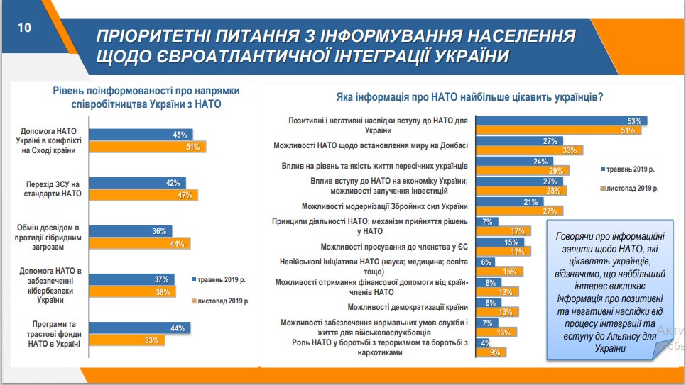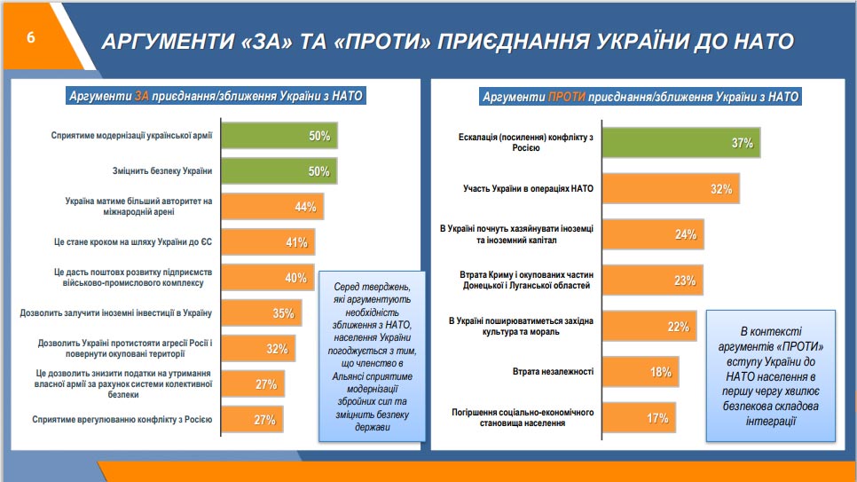 «Почти половина людей, не поддерживающих идею членства в Альянсе – 45,8 % – опасаются, что это окончательно испортит отношения с Россией. Более четверти – 28,7 % – считают, что присоединение к Альянсу спровоцирует Россию на открытую агрессию против Украины», — говорится в исследовании.