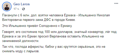 Об этом, например, уже заявил нардеп Гео Лерос, который ведет с главой ОП открытую войну.