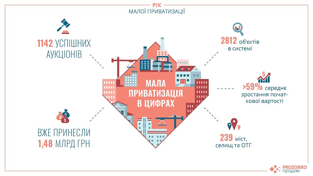 К системе присоединились 239 населенных пунктов и территориальных общин во всех областях Украины. При этом за год лидерами по объему привлеченных за счет малой приватизации средств стали такие города: