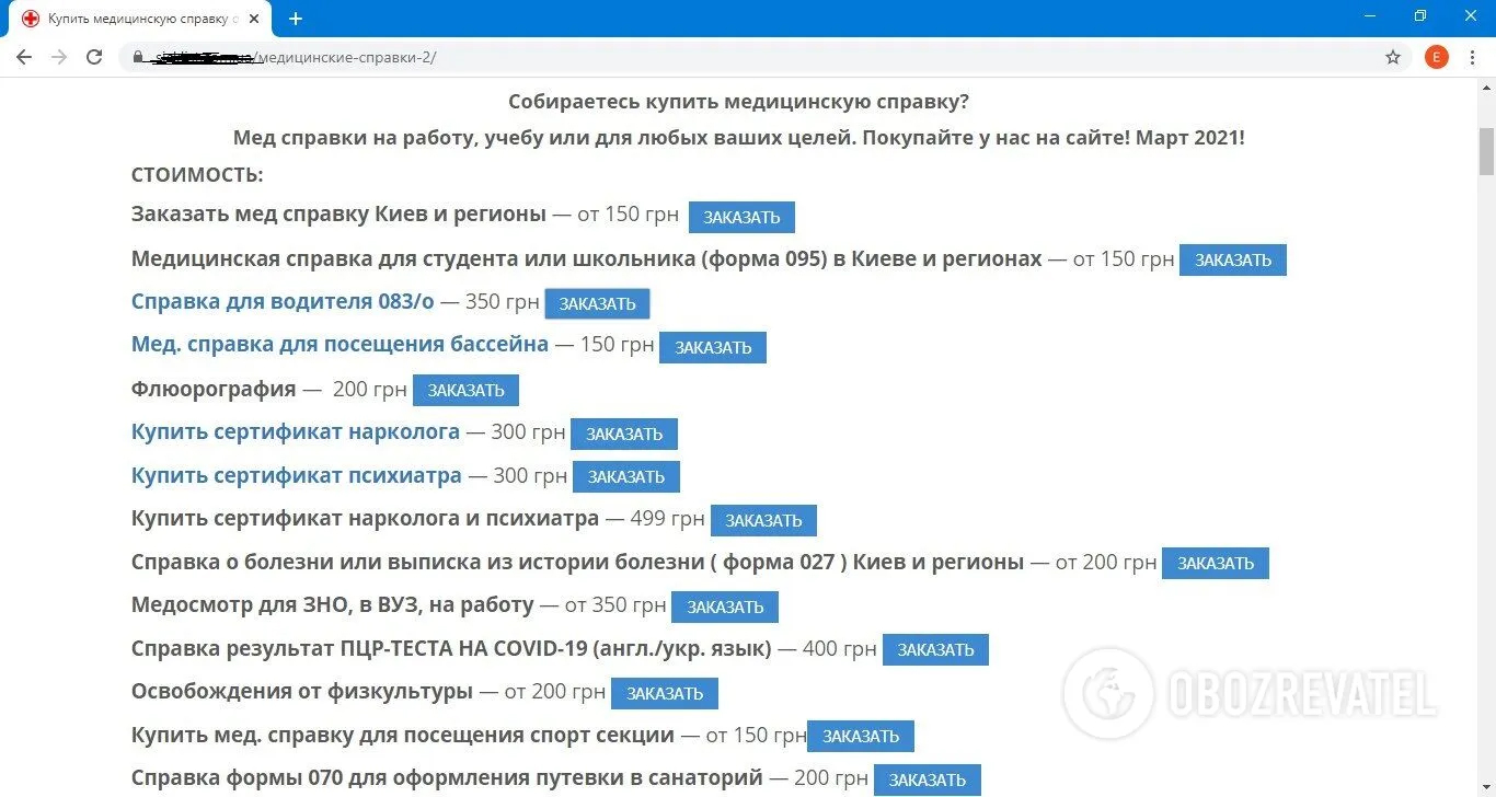 Украинцы могут легко найти в сети десятки сайтов, которые предлагают приобрести фальшивую справку об отрицательном тесте на коронавирус.