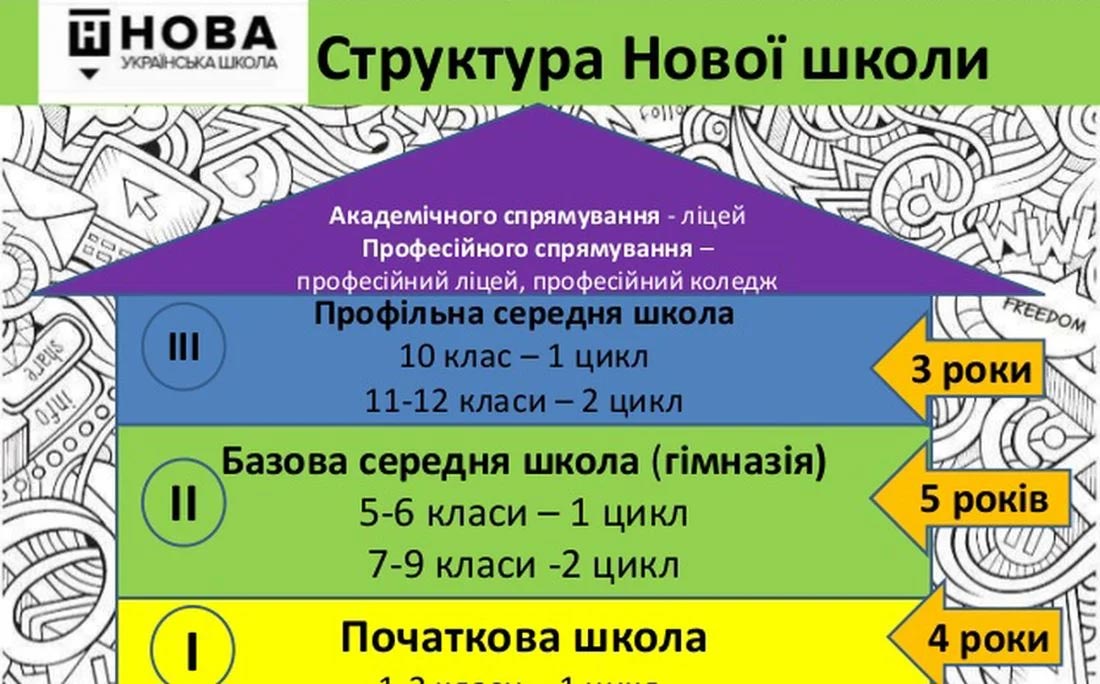Реформа предлагает, что новая украинская школа будет проводить обучение на начальном, базовом среднем и профильном среднем уровнях. В первую очередь это означает, что высшая школа в селах и районах может исчезнуть. Города-миллионники тоже столкнутся с сокращениями.