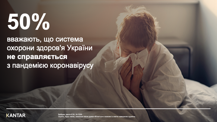 50% опрошенных считают, что система здравоохранения Украины не справляется с пандемией коронавируса. 20% респондентов считают, что справляется, 30% – не определились с ответом.