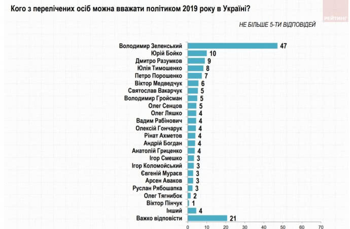 Дословно: «Большинство опрошенных (47%) считают Владимира Зеленского политиком 2019 году в Украине.