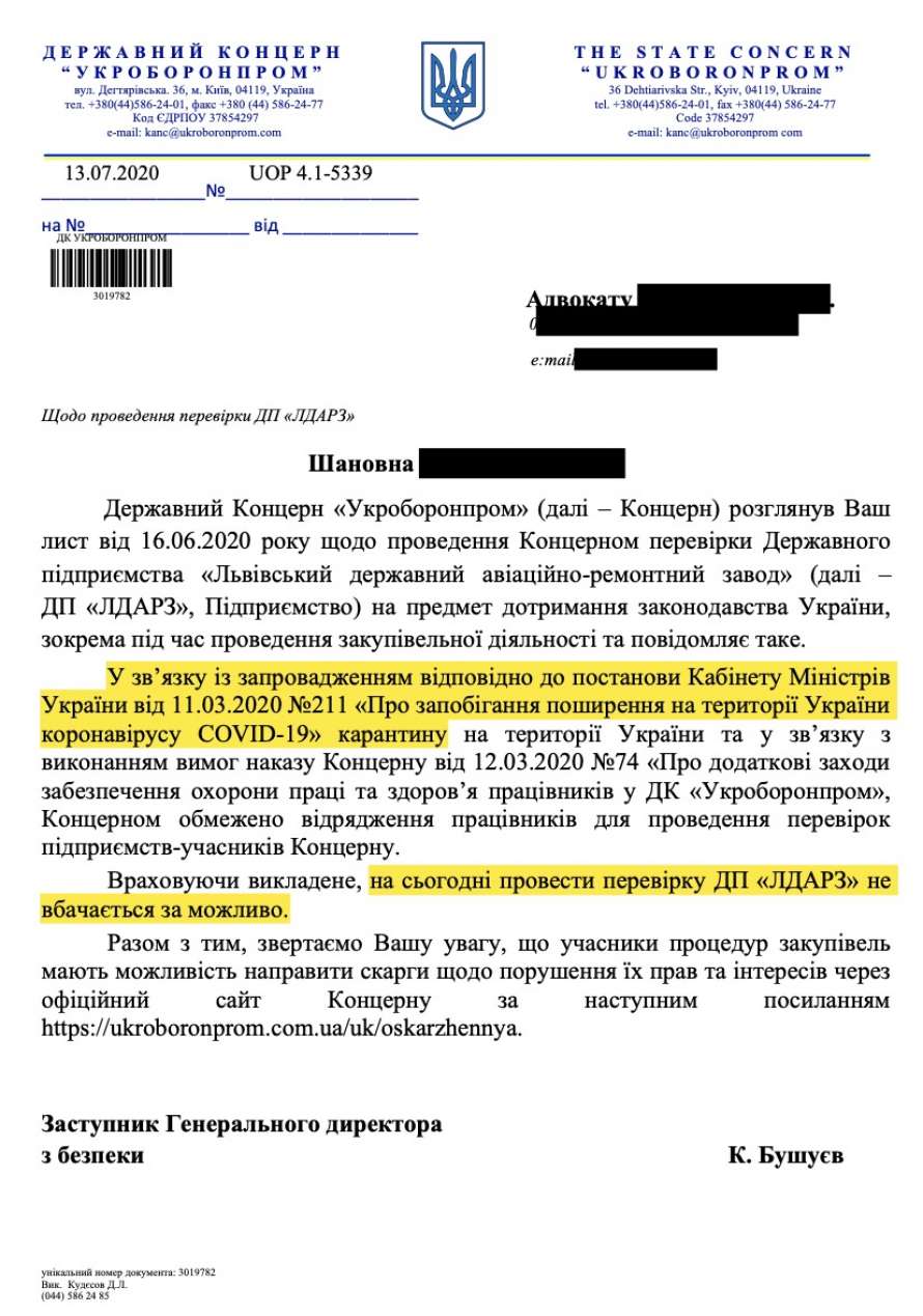 Ни «Укроборонпром», в подчинении которого находится Львовский авиаремонтный завод, ни правоохранительные и контролирующие органы пока на ситуацию не реагируют, хотя имеют достаточно информации для начала проверок и даже регистрации уголовного производства.