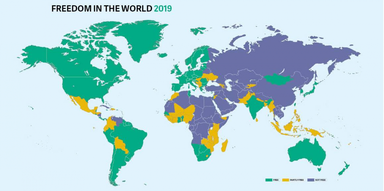5 июня международная правозащитная организация Freedom House опубликовала ежегодный отчет Freedom in the world 2019, который тринадцатый раз подряд отмечает снижение глобального уровня демократии в мире в 2018 году. Рассказываем, что говорится в этом отчете об Украине.