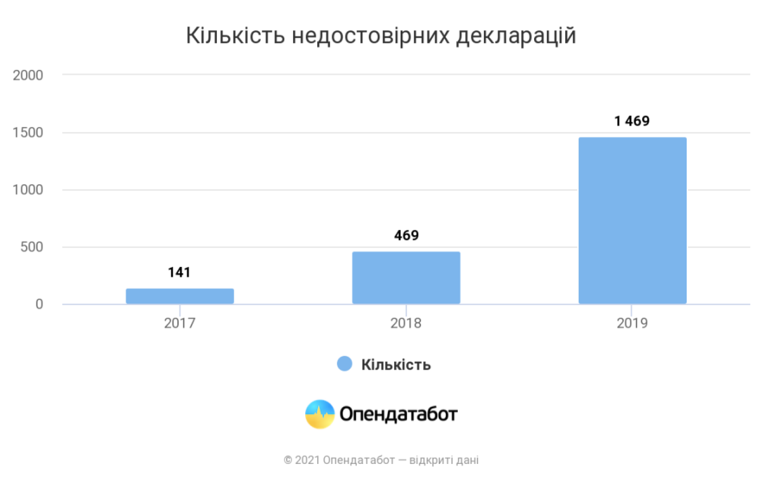 В 2019 году Национальное агентство по вопросам предотвращения коррупции (НАПК) выявило 1469 недостоверных деклараций — это самая большая цифра за последние четыре года. Всего в тот год НАПК проверило 1474 декларации.