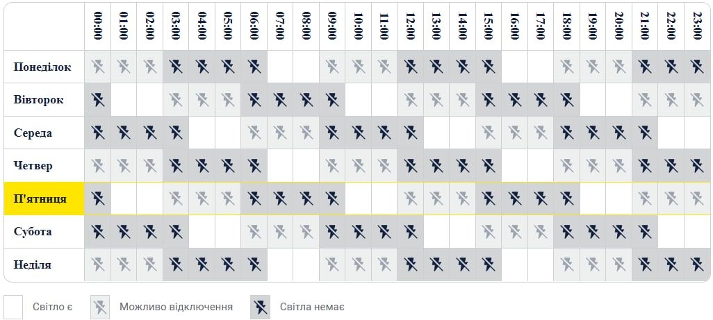 - света нет (серый цвет на графике). В такие периоды отключение обязательно будет;