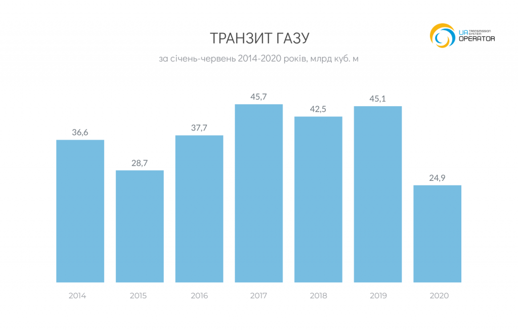 За первые шесть месяцев 2020 года Оператор ГТС Украины транспортировал 25 млрд куб. м газа в Европу