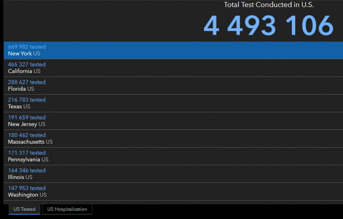 В США с начала эпидемии нового коронавируса на COVID-19 проверили 4 493 106 граждан