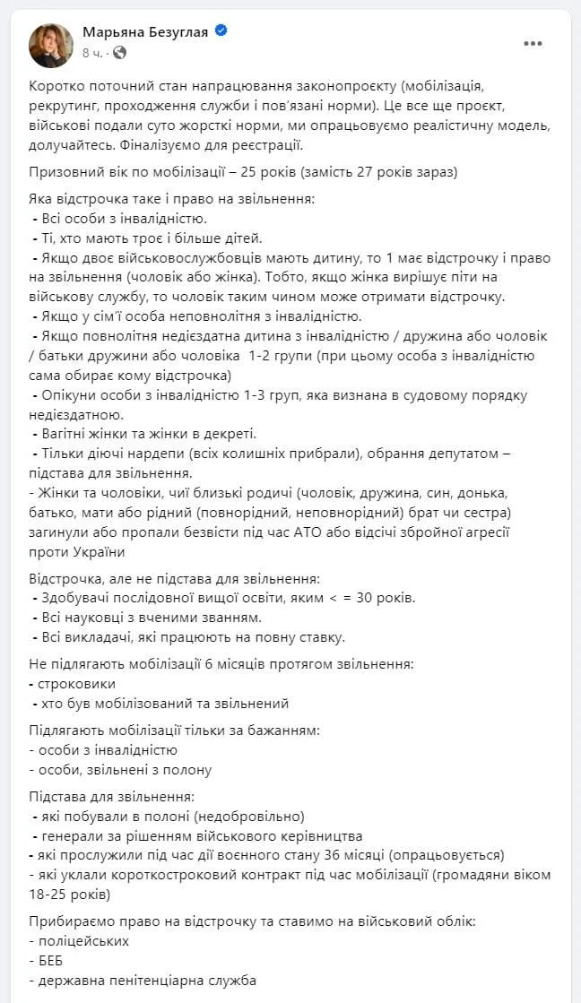 Безуглая сообщила, что военнообязанных граждан обяжут: