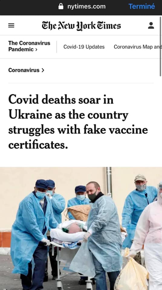 «Представители органов здравоохранения Украины борются с двумя взаимосвязанными и неприятными проблемами: широко распространенным скептицизмом в отношении вакцин и незаконными схемами продажи поддельных учетных данных о Covid, которые люди используют, чтобы обойти ограничения, направленные на замедление распространения вируса, например, новое правило, вступающее в силу 21 октября, которое требует сертификат или отрицательный тест для посадки в поезд.