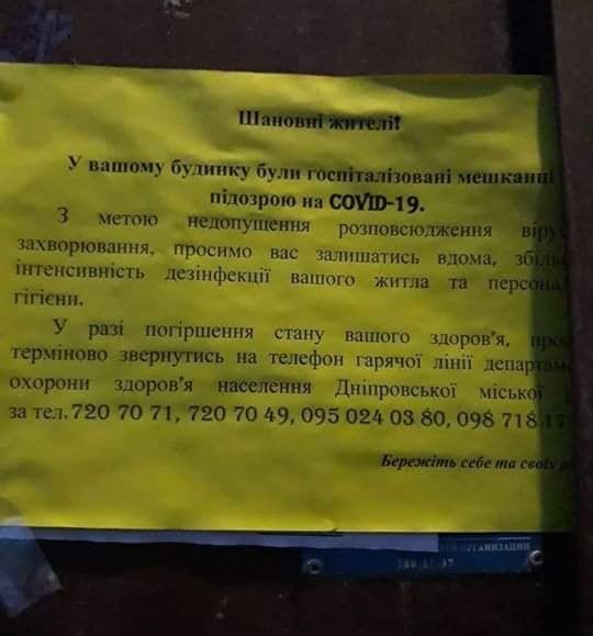 Коронавирус в Украине продолжает распространяться, а вот в Днепре придумали еще один изощренный способ борьбы с пандемией COVID-19. На домах, где живут люди с подозрением коронавируса стали развешивать объявления.