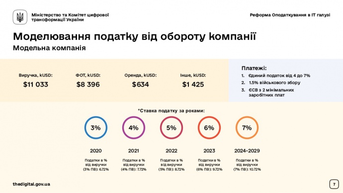 Министерство цифровой трансформации Украины совместно с профильным комитетом Верховной Рады работают над подготовкой реформы налогообложения для IТ-отрасли, предусматривающей установление единого налога на уровне 4-7% от оборота компаний.