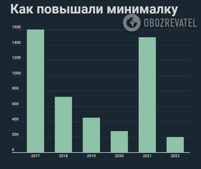 Об этом говорится в материале OBOZREVATEL. Отметим, даже из данных о повышении зарплат видно: в каком году Украина получала кредит, а в каком – нет. Так, в 2021-м, до переговоров с МВФ, минималку повысят на 1500 грн (с 5 до 6,5 тыс. грн). А в бюджете на 2022-й уже всего на 200 грн.