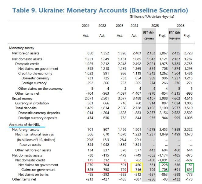 Табл.3 Монетарный баланс НБУ и банков. Источник: МВФ 28.03.2025.