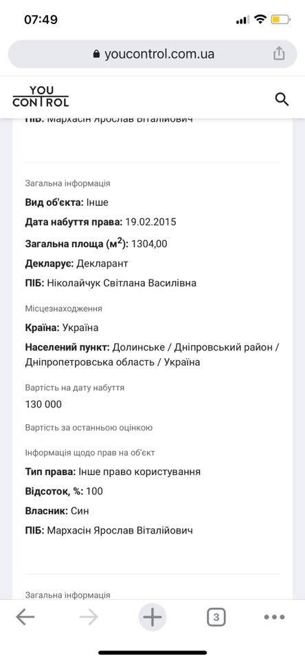 Как рассказывает днепровская юристка Наталья Эшонкулова, она заметила в реестре онлайн-сервиса по проверке деятельности компаний – YouControl – декларацию о том, что военная база в селе Долинское с февраля 2015 года стала принадлежать Ярославу Витальевичу Мархасину. Последнему на тот момент, по словам Натальи, было всего лишь два года, сейчас ребенку 8 лет.