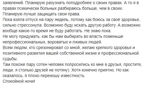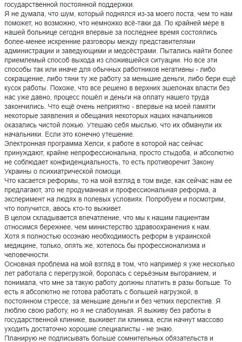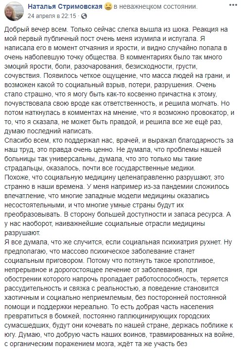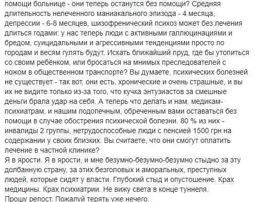 Ее пост получил широкий резонанс в СМИ и социальных сетях. Психиатр выпустила еще один, в котором рассказала о других проблемах.
