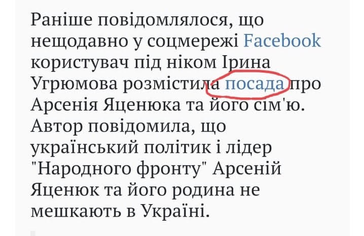 Стоит обратить внимание на то, что «уши Москвы» буквально торчат на сайтах, которые «вентилятором» раскинули лживые публикации в интернете. Достаточно обратить внимание на текст на одном из «интернет-бачков», где ясно и очевидно, что слово пост переведен с русского как «должность», хотя речь шла о посте в ФБ (см. скриншот ниже). Показательно, что отрабатывая годами деньги ФСБ, провокаторы даже не научились делать грамотные переводы, чем выдают своих хозяев и заказчиков.