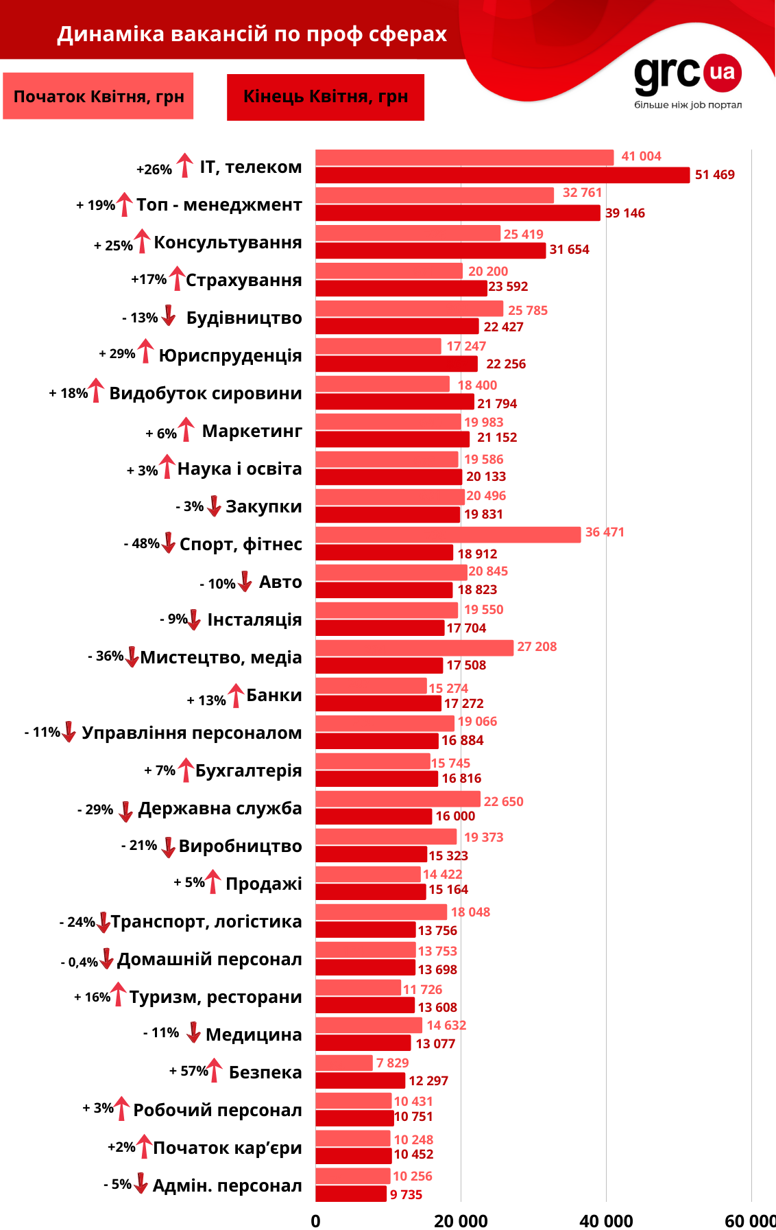 В апреле 2021 года на рынке труда больше всего выросло число вакансий для менеджеров отделов продаж, компьютерных специалистов и медиков. При этом самые высокие зарплаты остаются в сфере IT-индустрии – тут рост составил 26%, достигнув 51 тыс. грн.