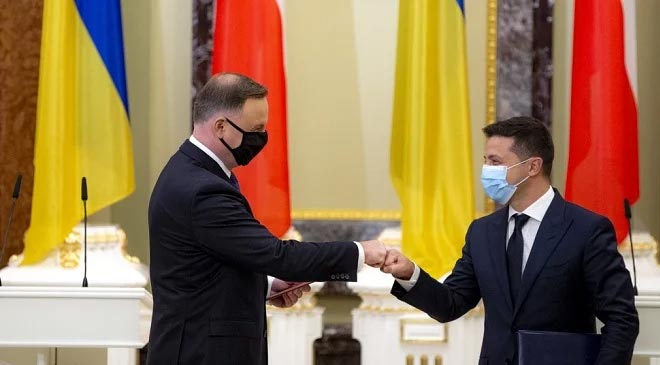 В своем выступлении Зеленский отметил, что объем прямых иностранных инвестиций из Польши достигает сегодня более 800 млн долл., а товарооборот между Украиной и Польшей в прошлом году составил почти 8 млрд долл. По его словам, Польша является вторым крупнейшим в мире рынком для экспорта украинских товаров.