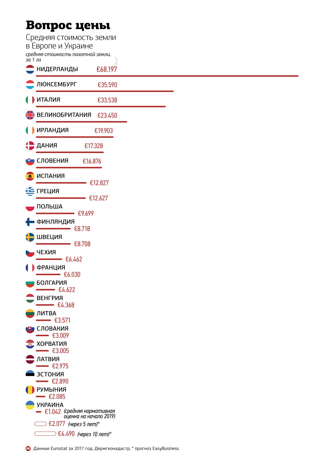Вот именно, реагируют в правительстве, неограниченный. И называют конкретные цифры: уже в первый год запуска рынок земли даст ВВП дополнительные 2% роста. Аналитический центр EasyBusiness прогнозирует, что в таком случае в ближайшее десятилетие украинский ВВП прирастет дополнительными $100 млрд. За это же время гектар подорожает вчетверо, до $5 тыс., и таким образом обойдет сегодняшнюю Венгрию ($4,8 тыс./га), хотя и не доберется до уровня Чехии ($7 тыс./га).